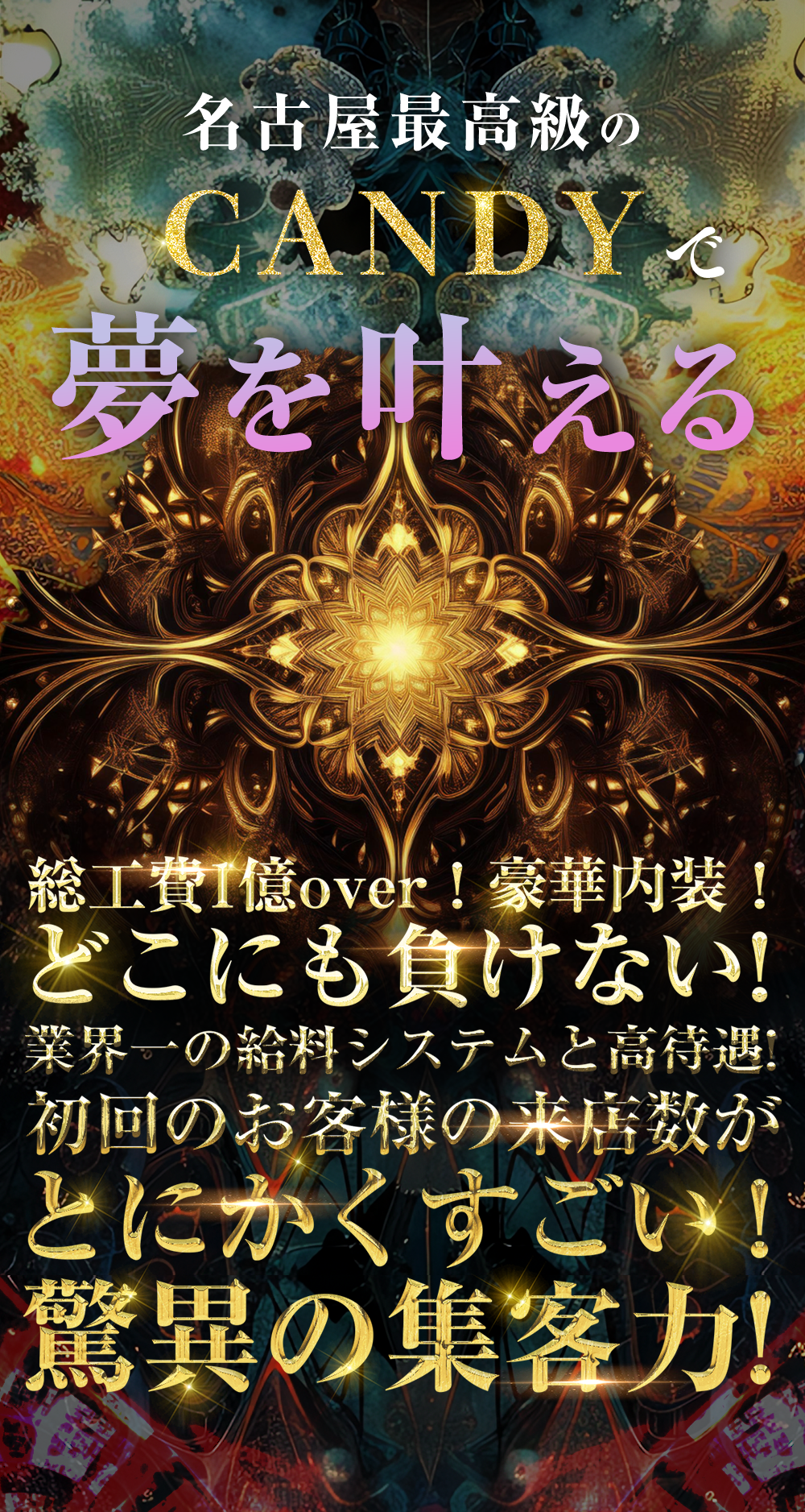| 職種 | ①ホスト(経験問わず)※幹部候補大募集 ②内勤スタッフ ③運営スタッフ ④ヘアスタイリスト ⑤PCクリエイター ⑥スカウト |