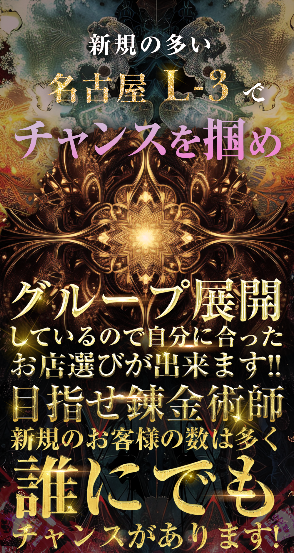 | 資格 | 18才以上(高校生不可) ※経験者大歓迎! ※シガラミ等は別途ご相談ください。 |